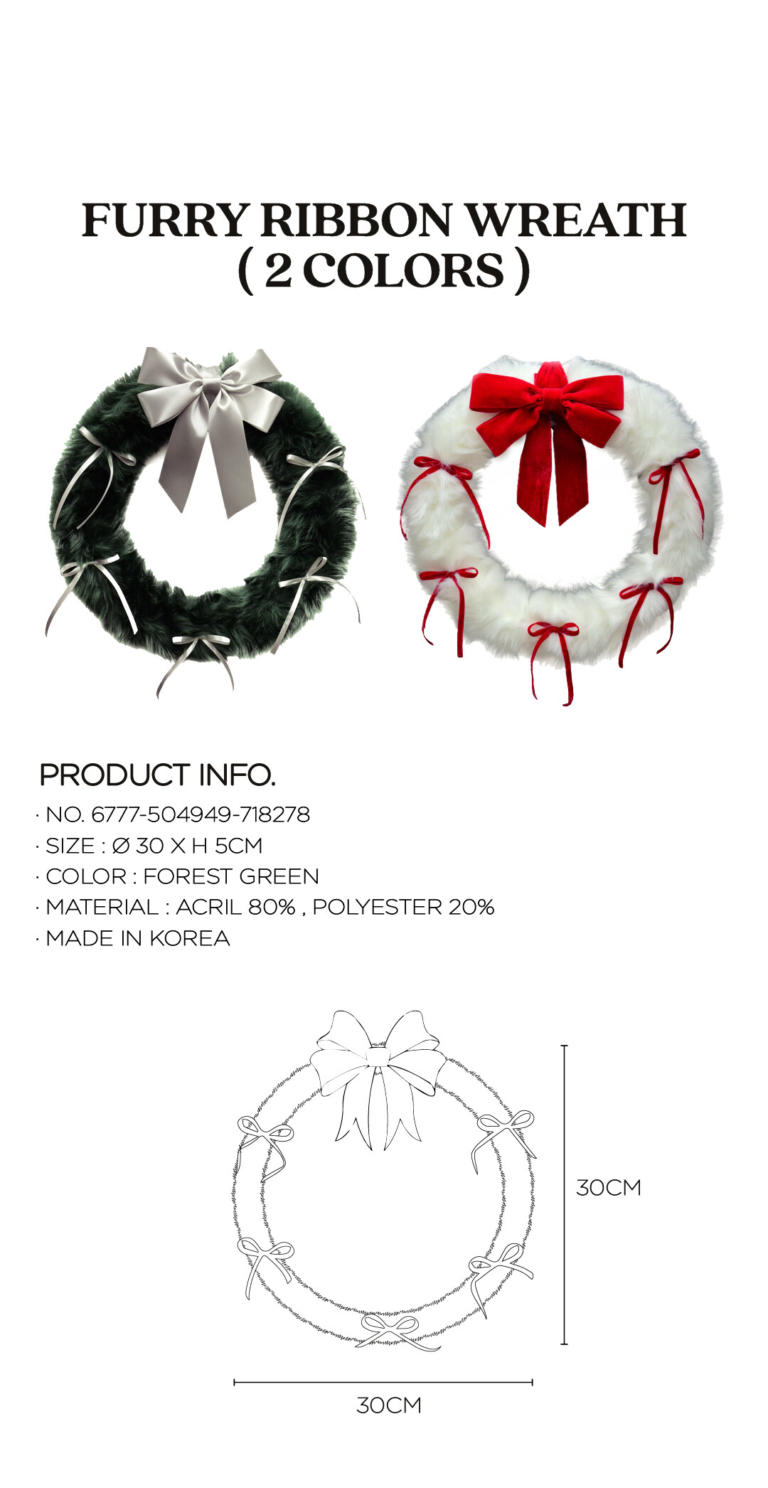 FURRY RIBBON WREATH (FOREST GREEN) 23Ver.