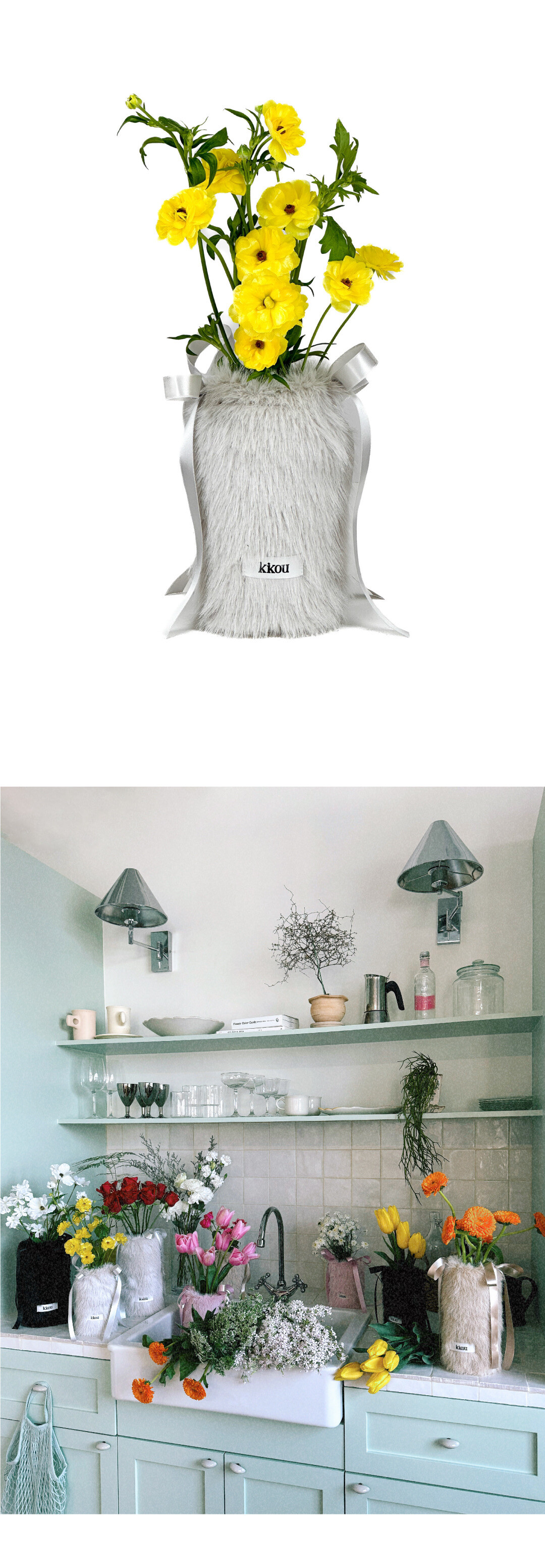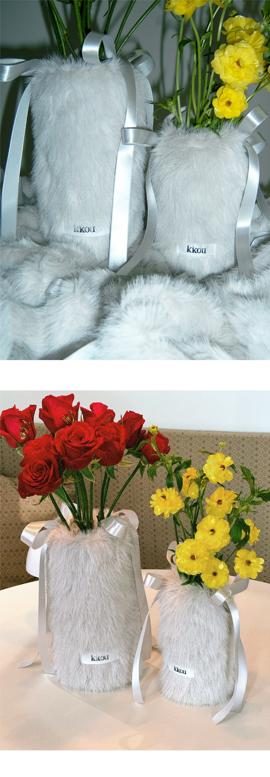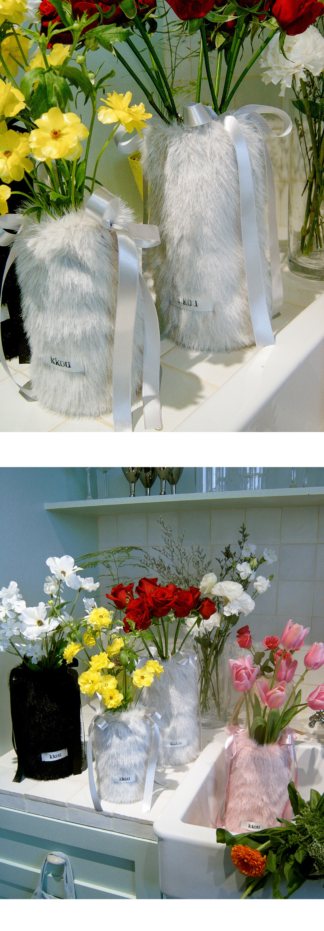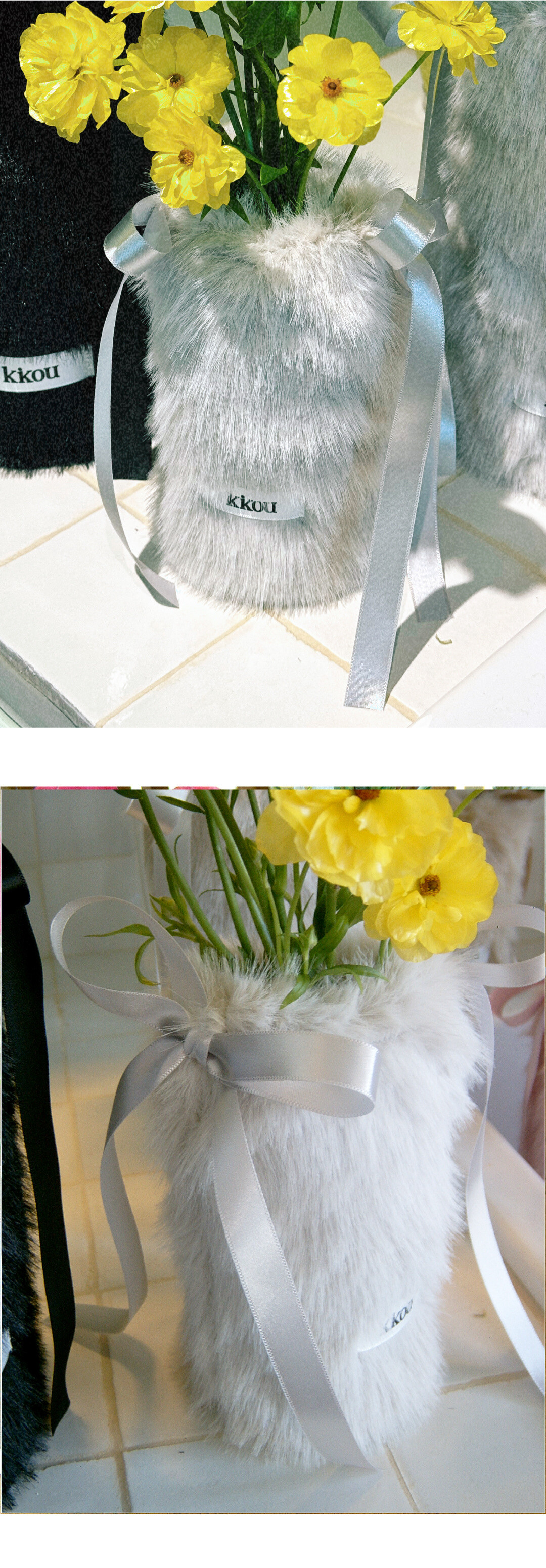 FURRY RIBBON VASE COVER (LIGHT GRAY) S