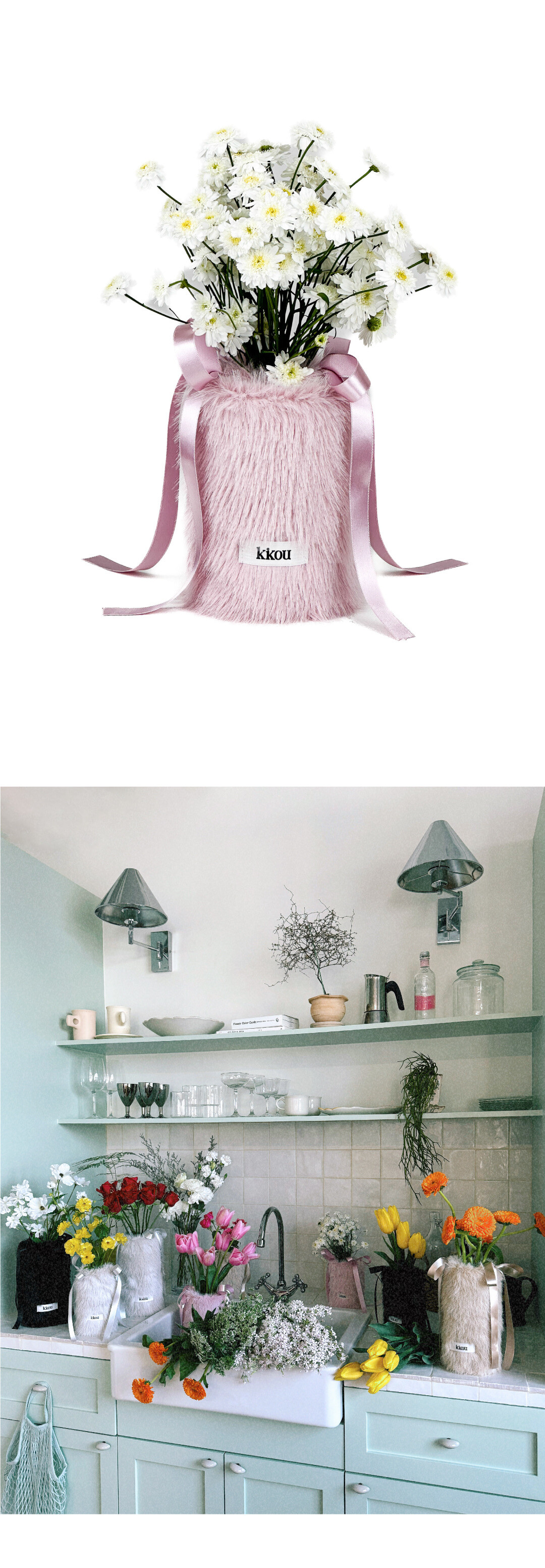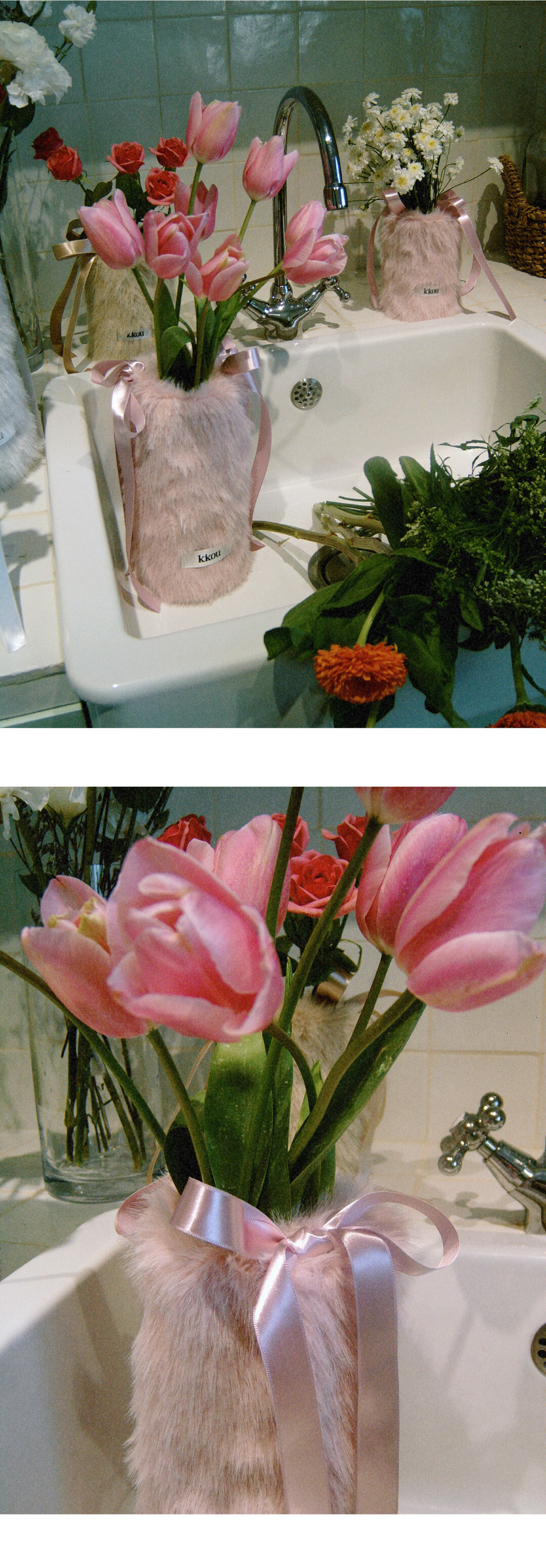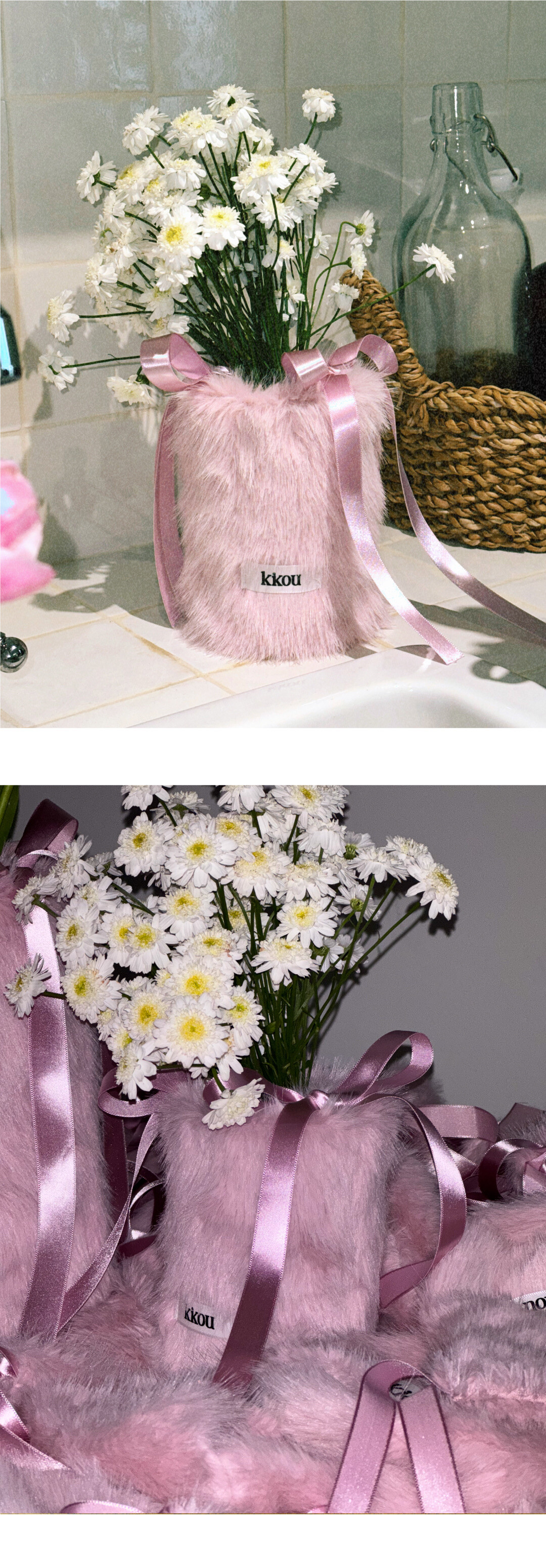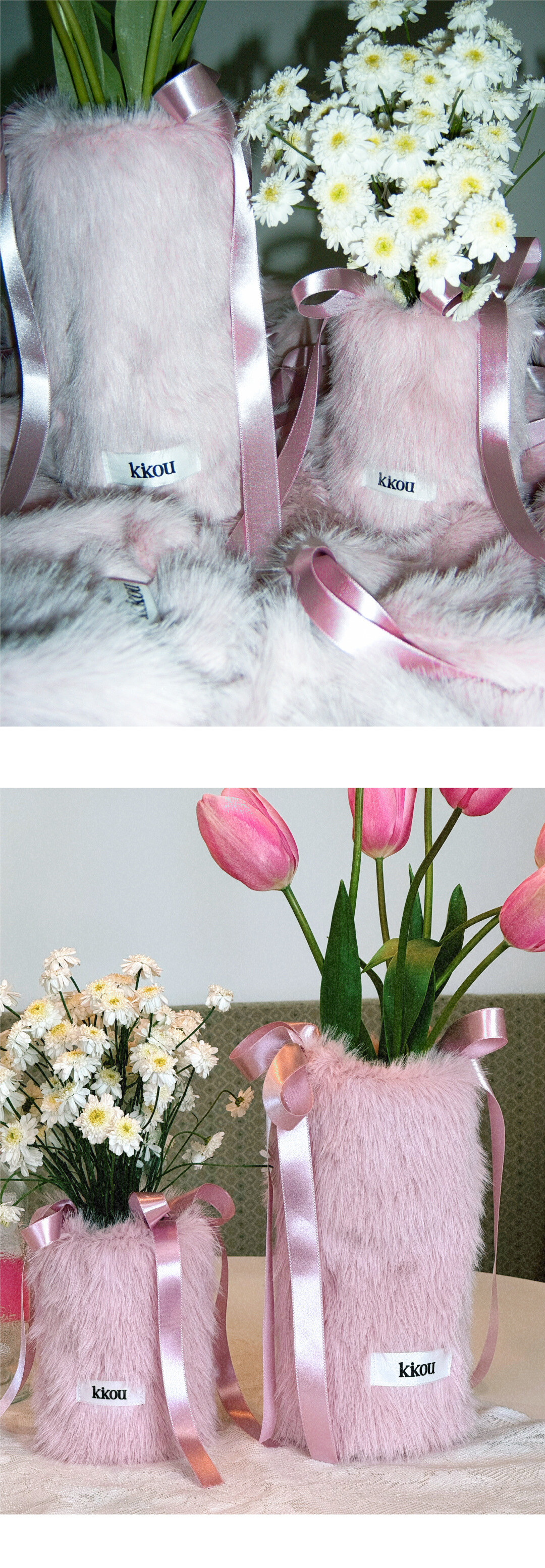 FURRY RIBBON VASE COVER (BABY PINK) S