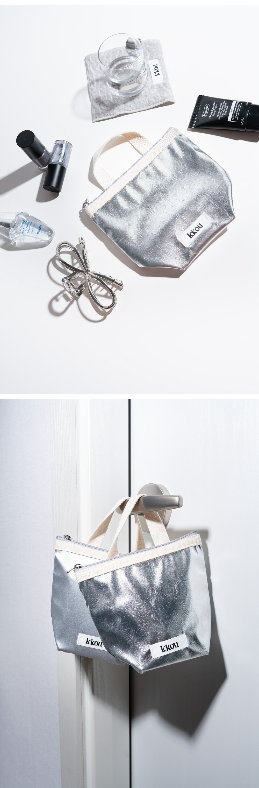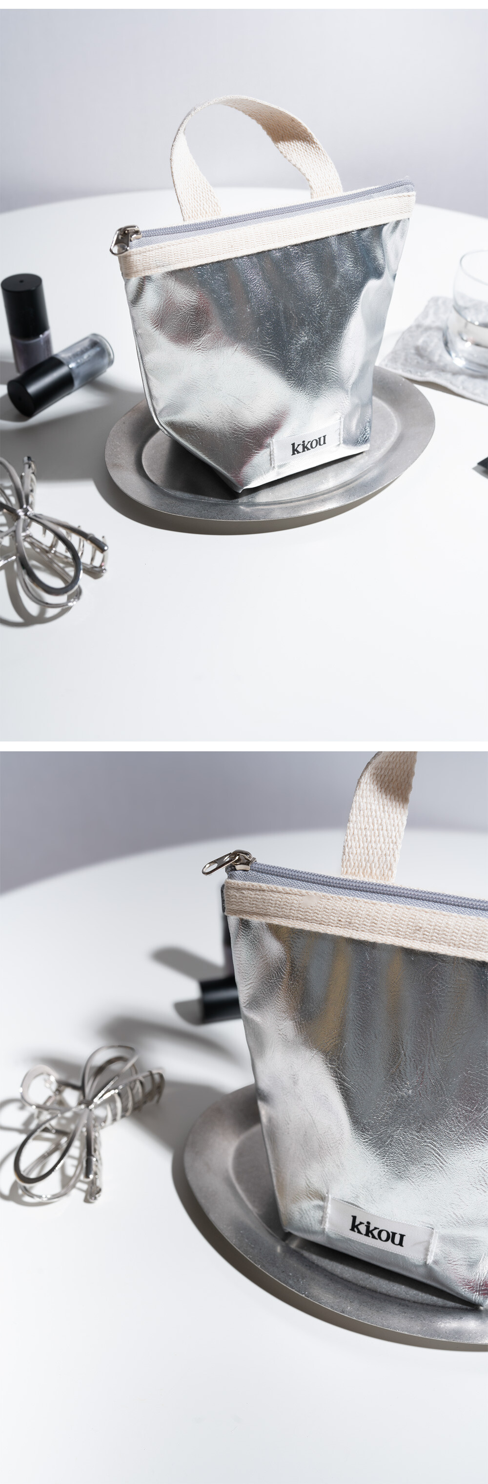 COMPACT HANDLE POUCH (GLOSSY SILVER)