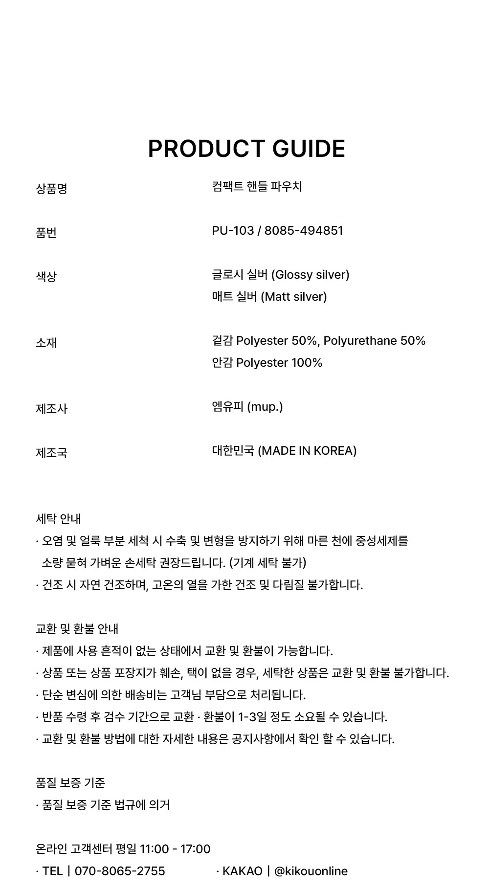 - 자세한 내용은 [NOTICE]-2. RETURNS & EXCHANGES 확인해주시기 바랍니다.