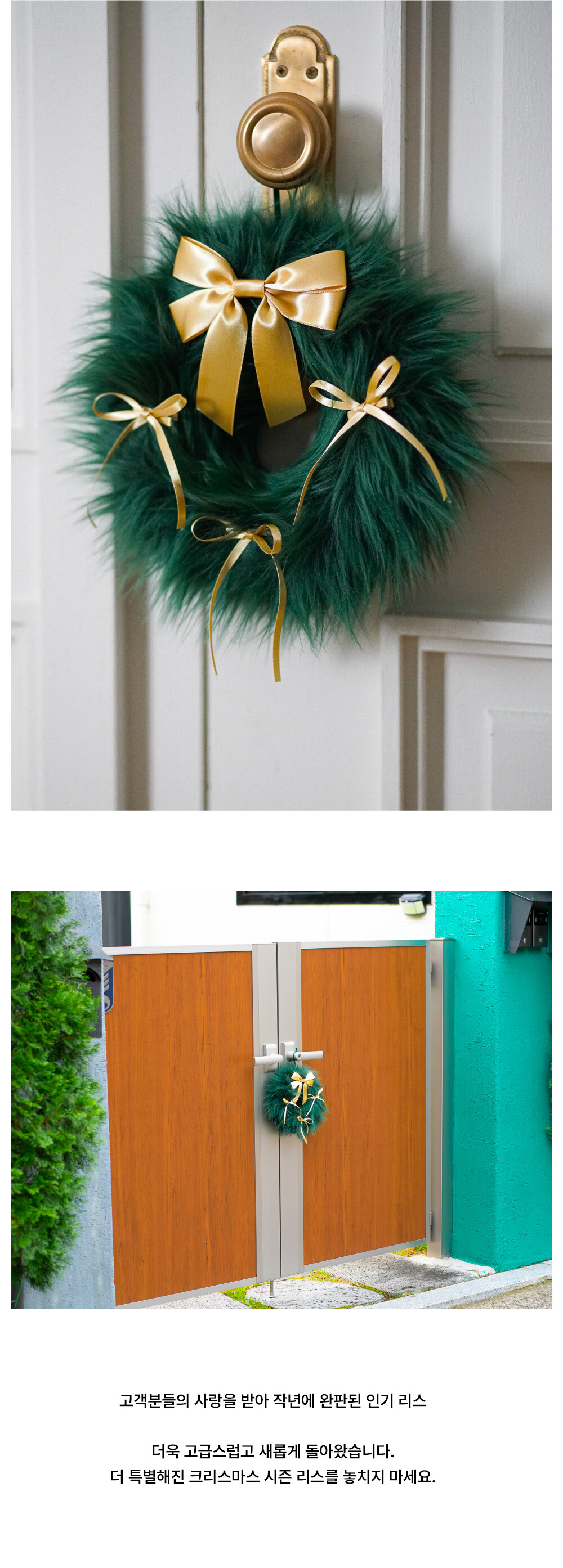 FURRY RIBBON WREATH - S (GREEN/GOLD)