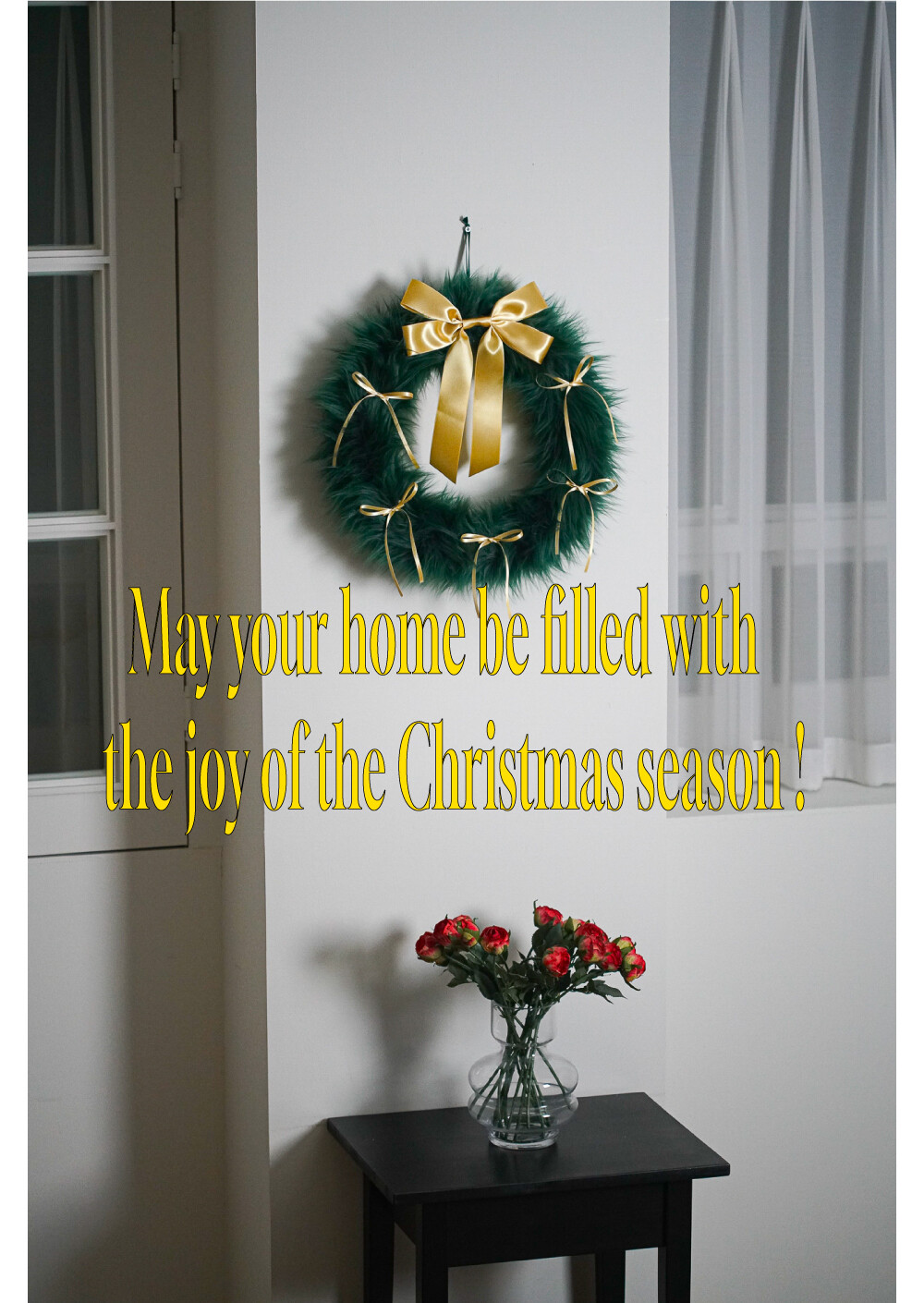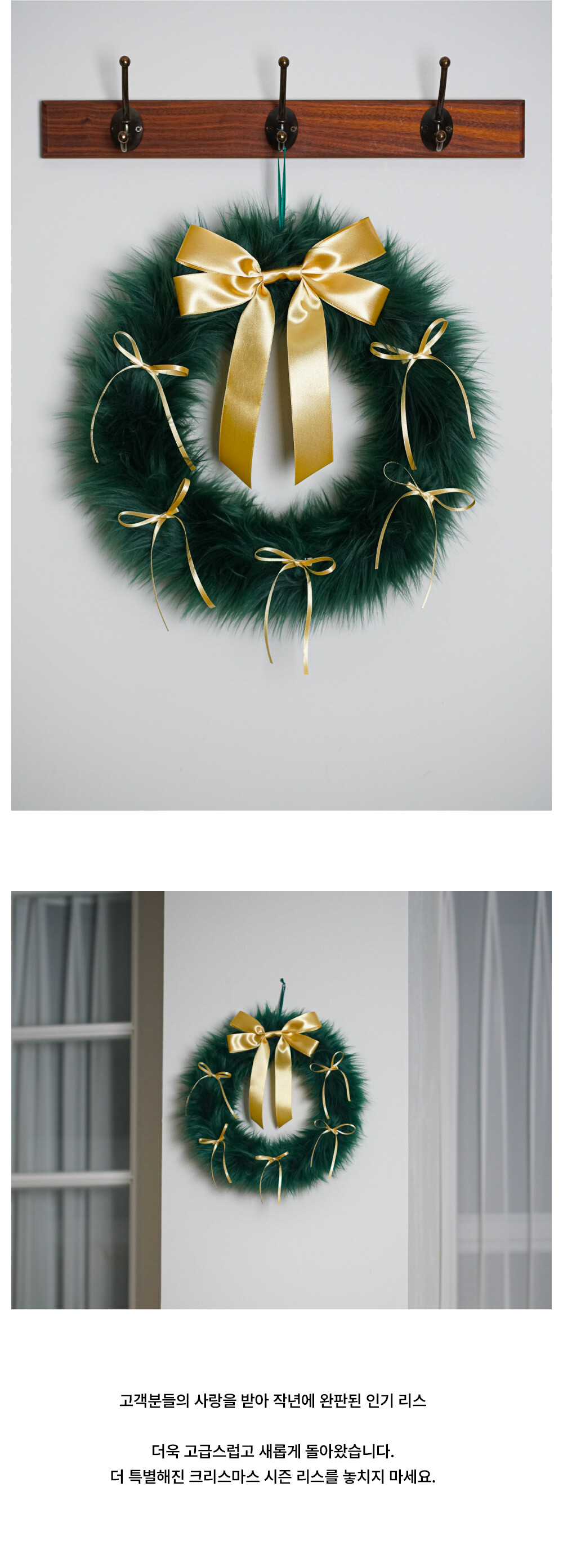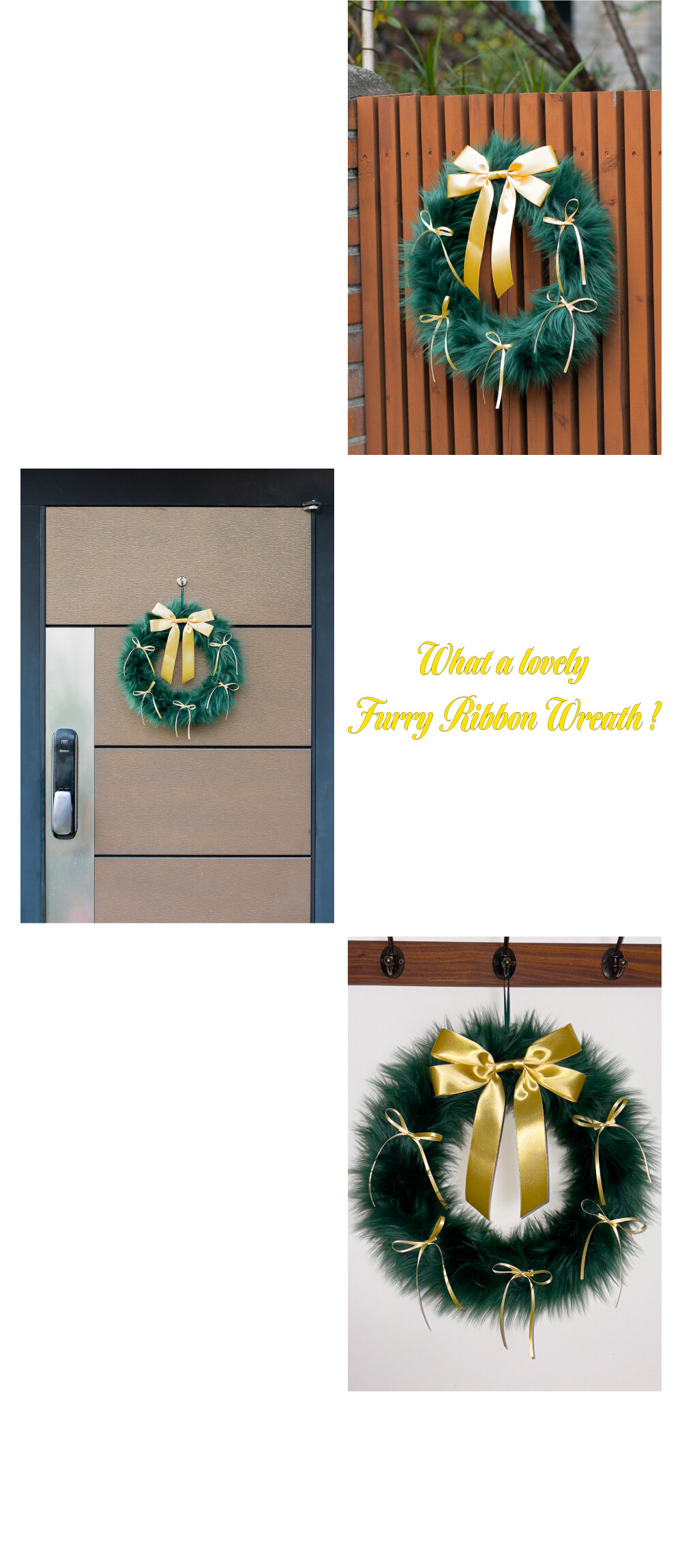 FURRY RIBBON WREATH - M (GREEN/GOLD)