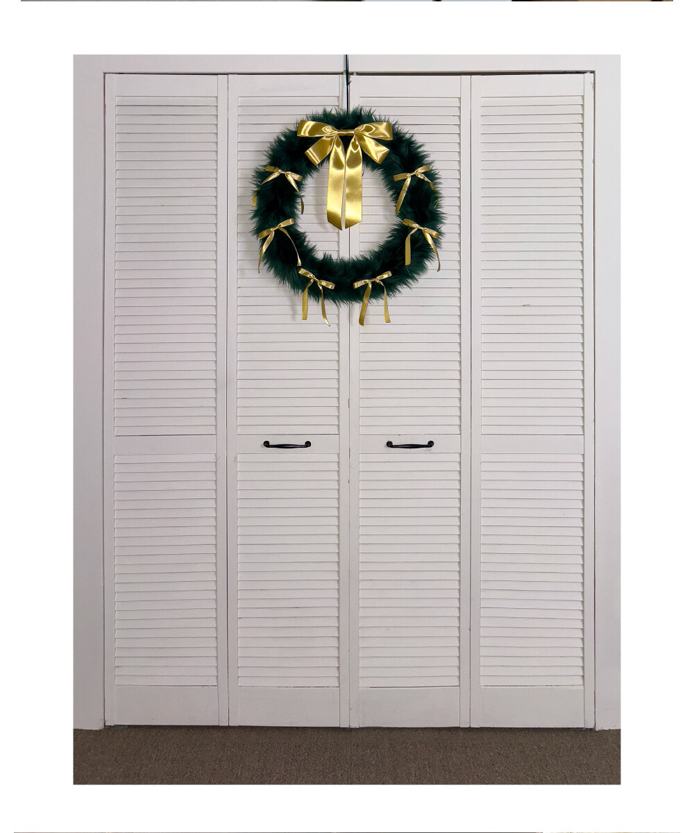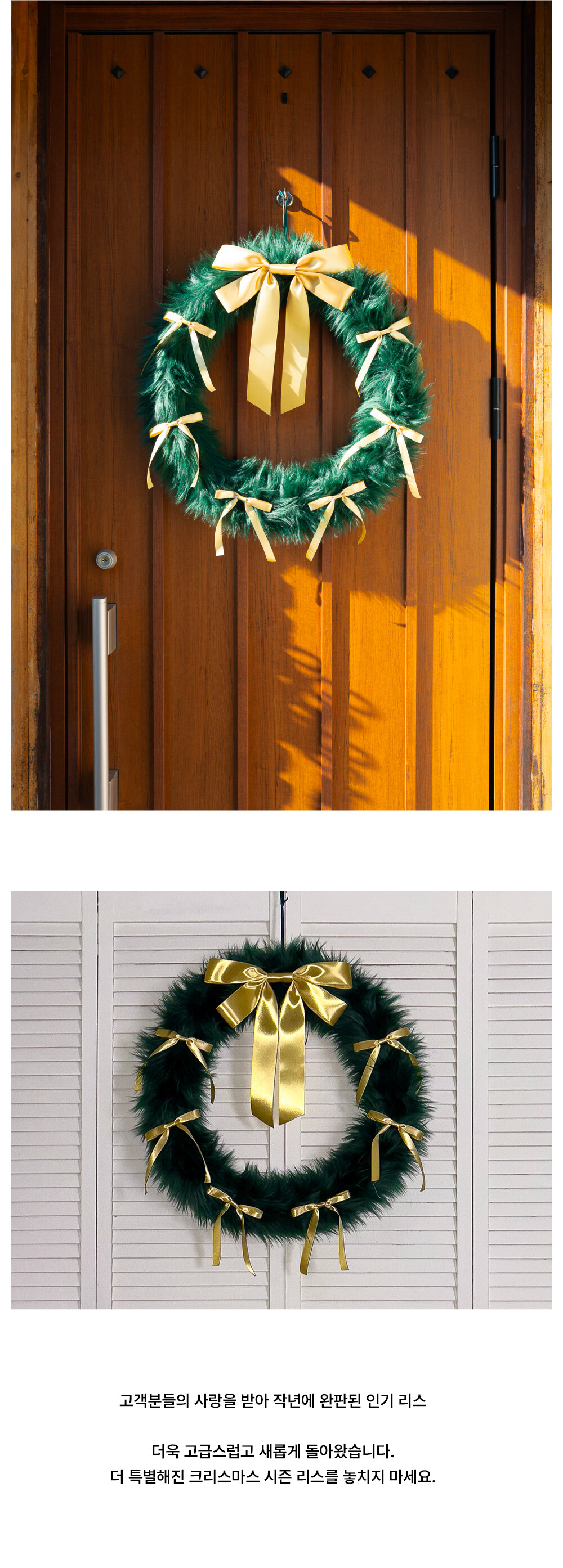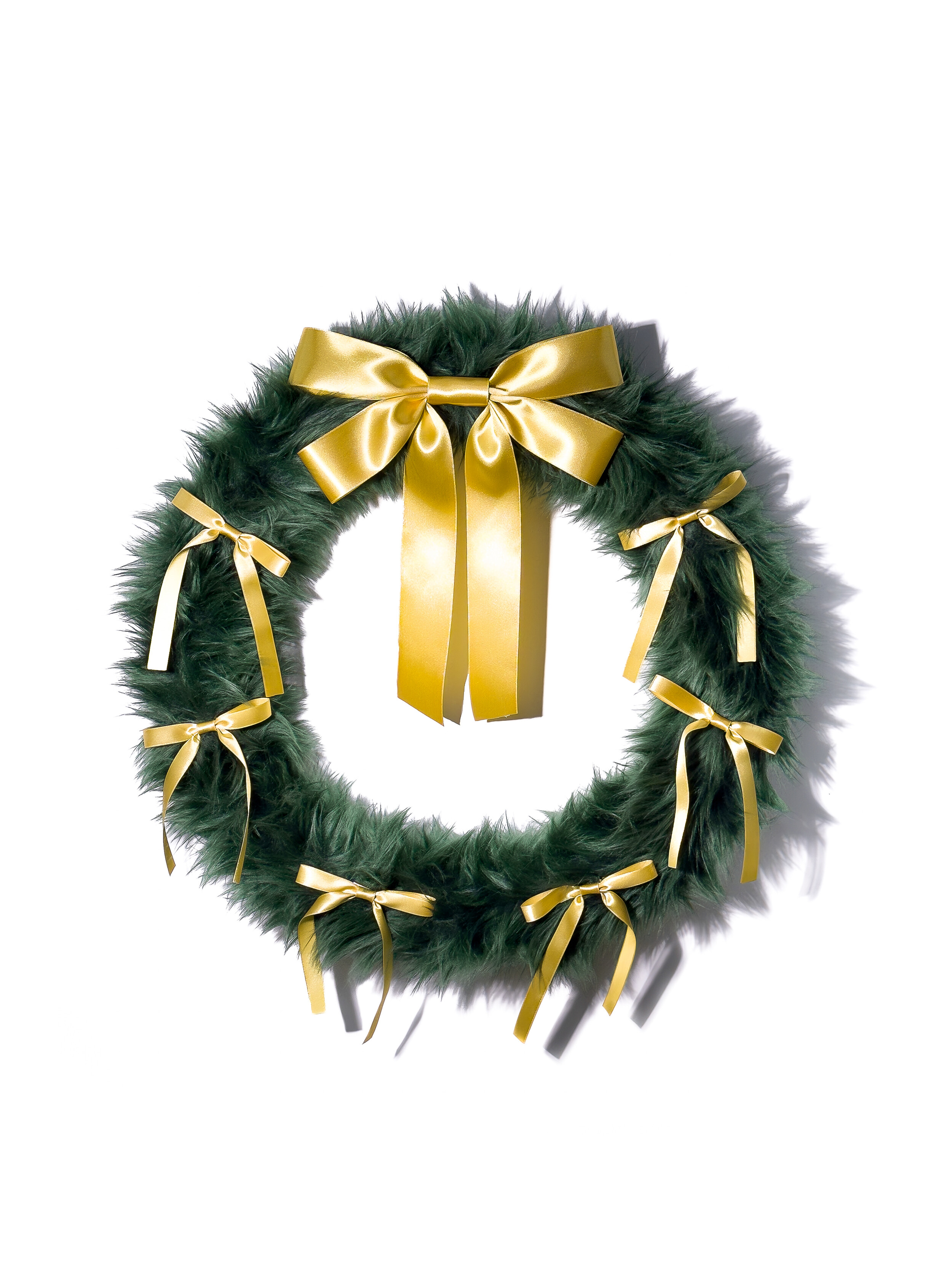FURRY RIBBON WREATH - L (GREEN/GOLD)