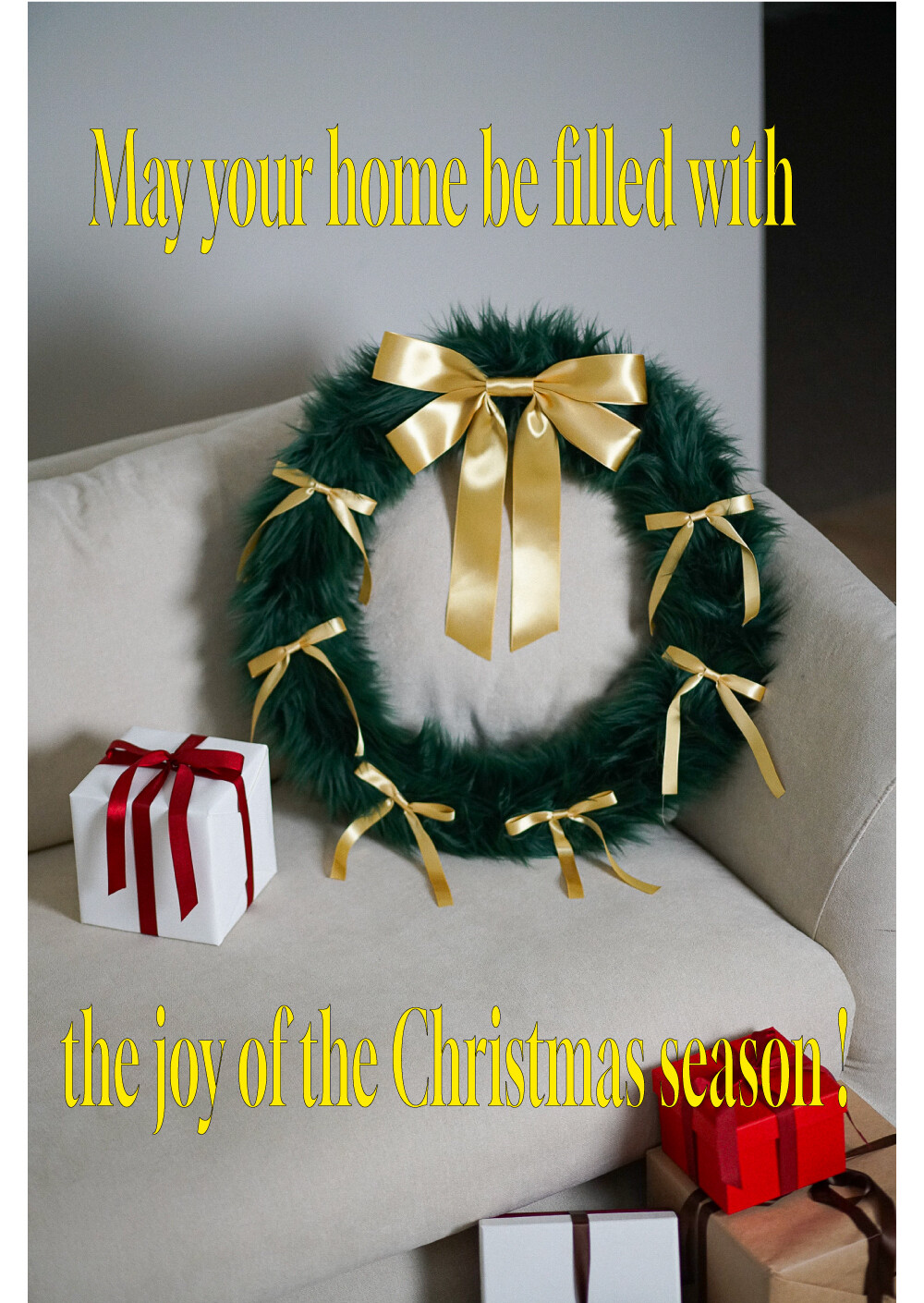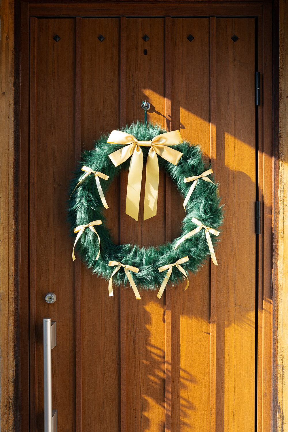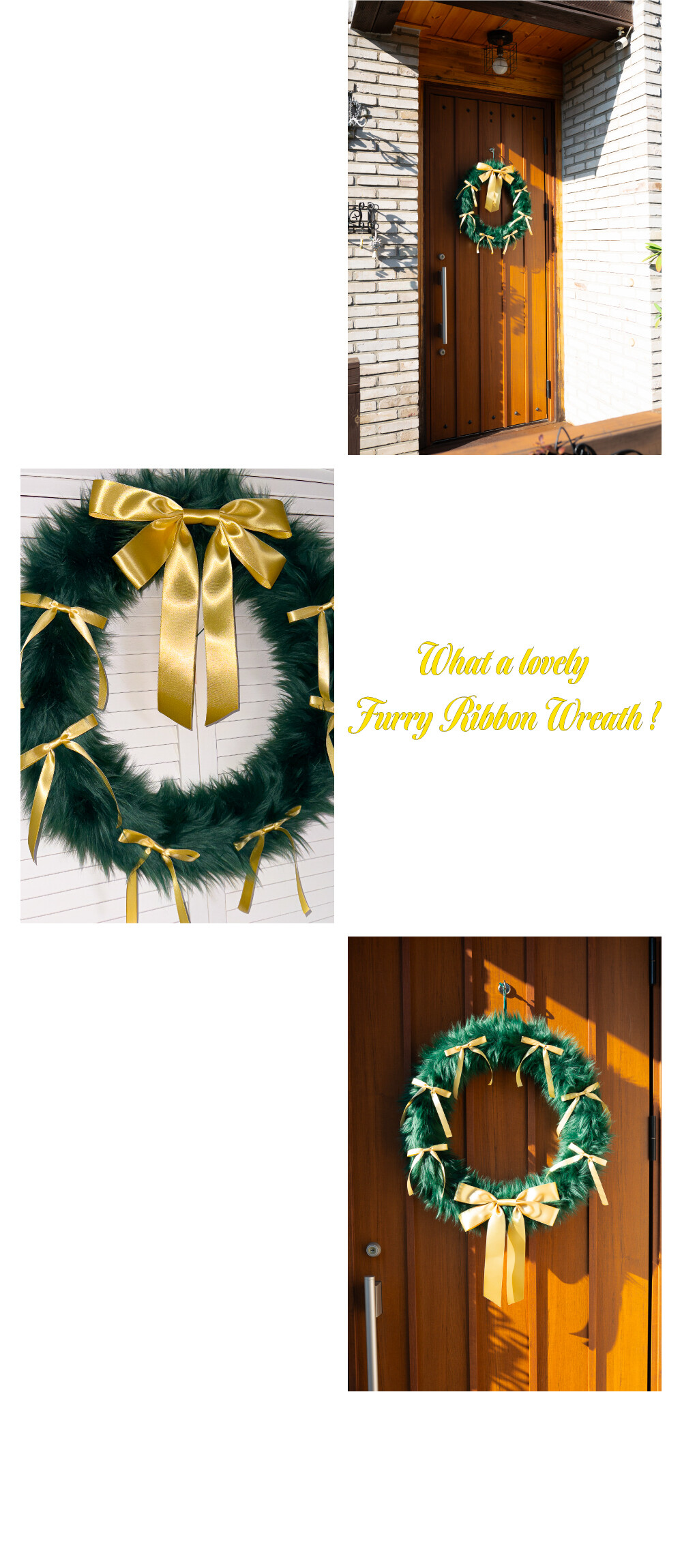 FURRY RIBBON WREATH - L (GREEN/GOLD)