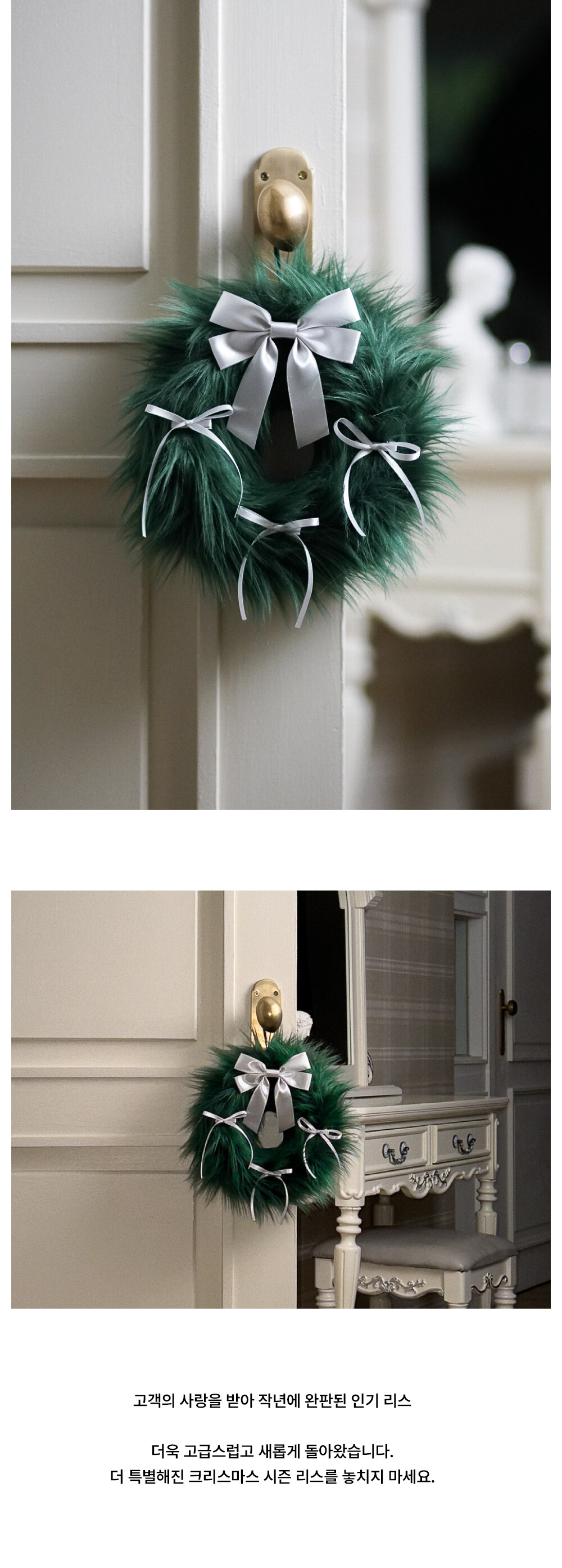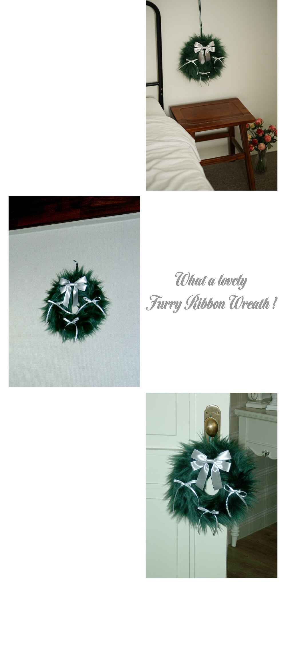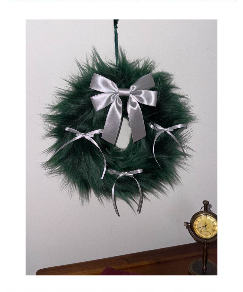 FURRY RIBBON WREATH - S (GREEN/SILVER)