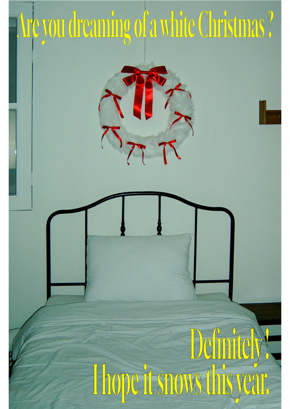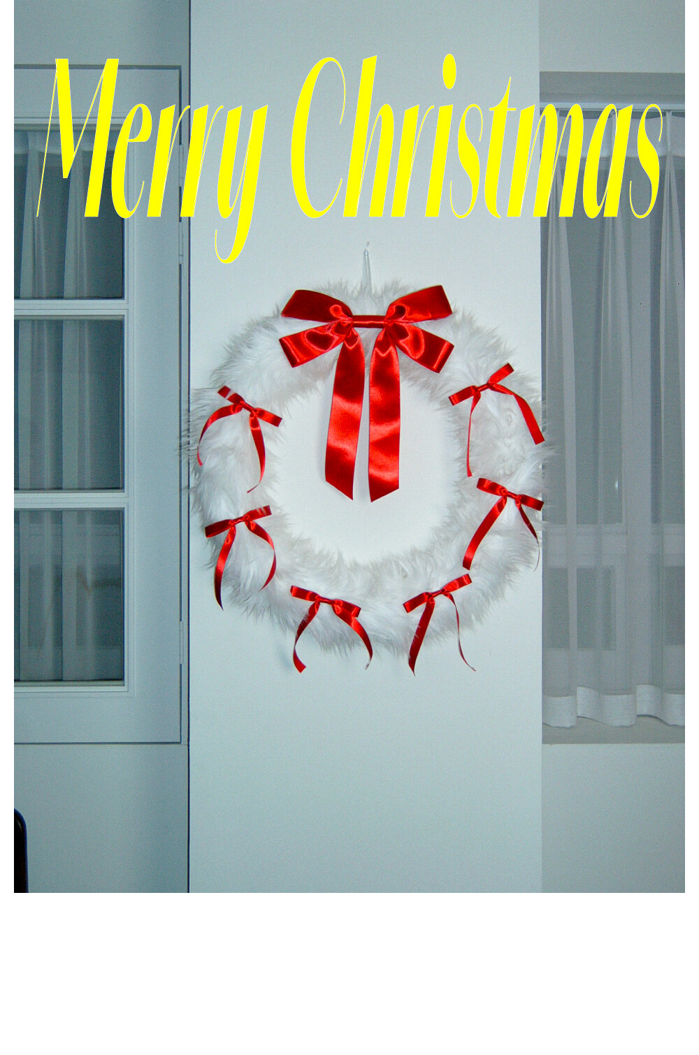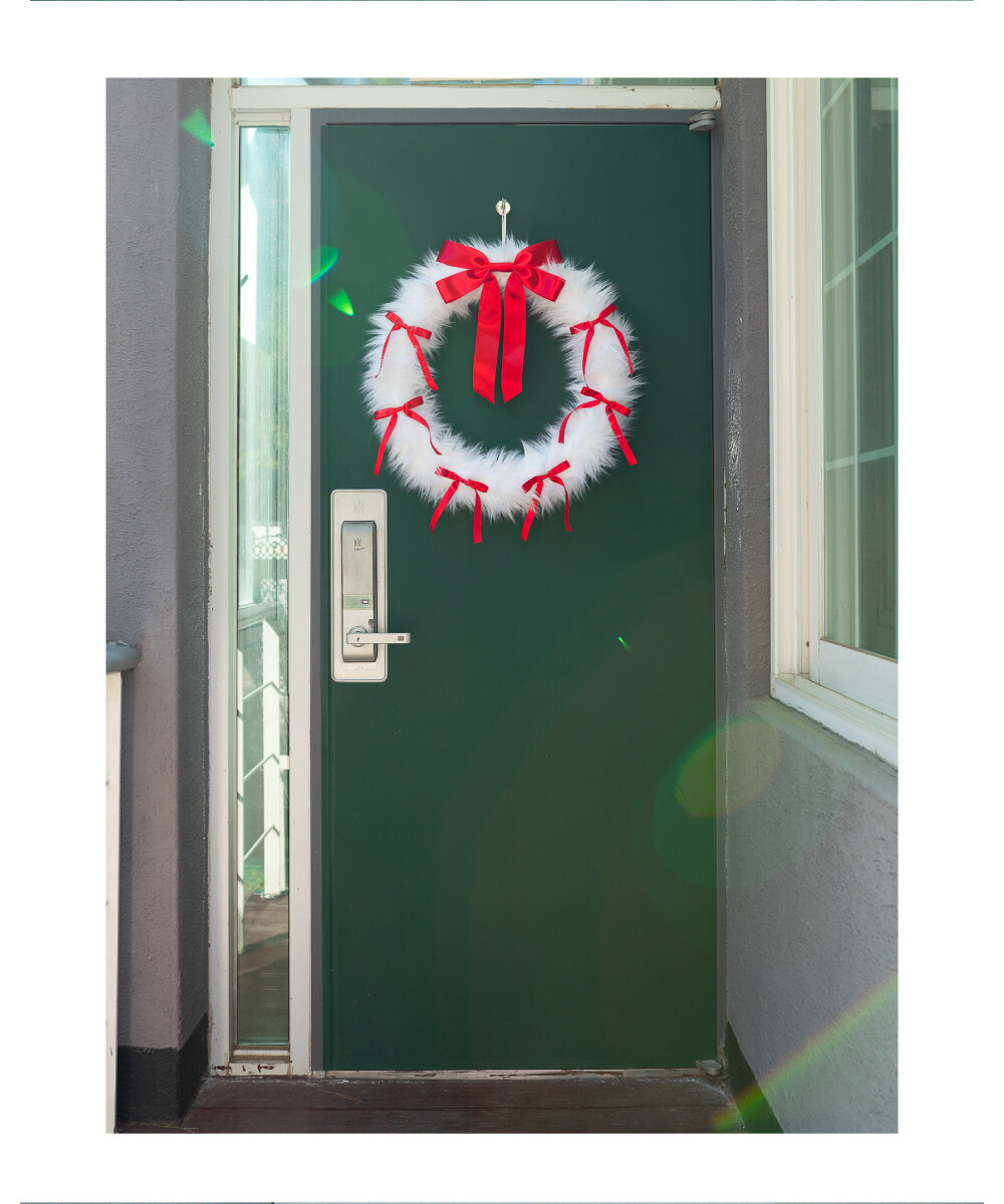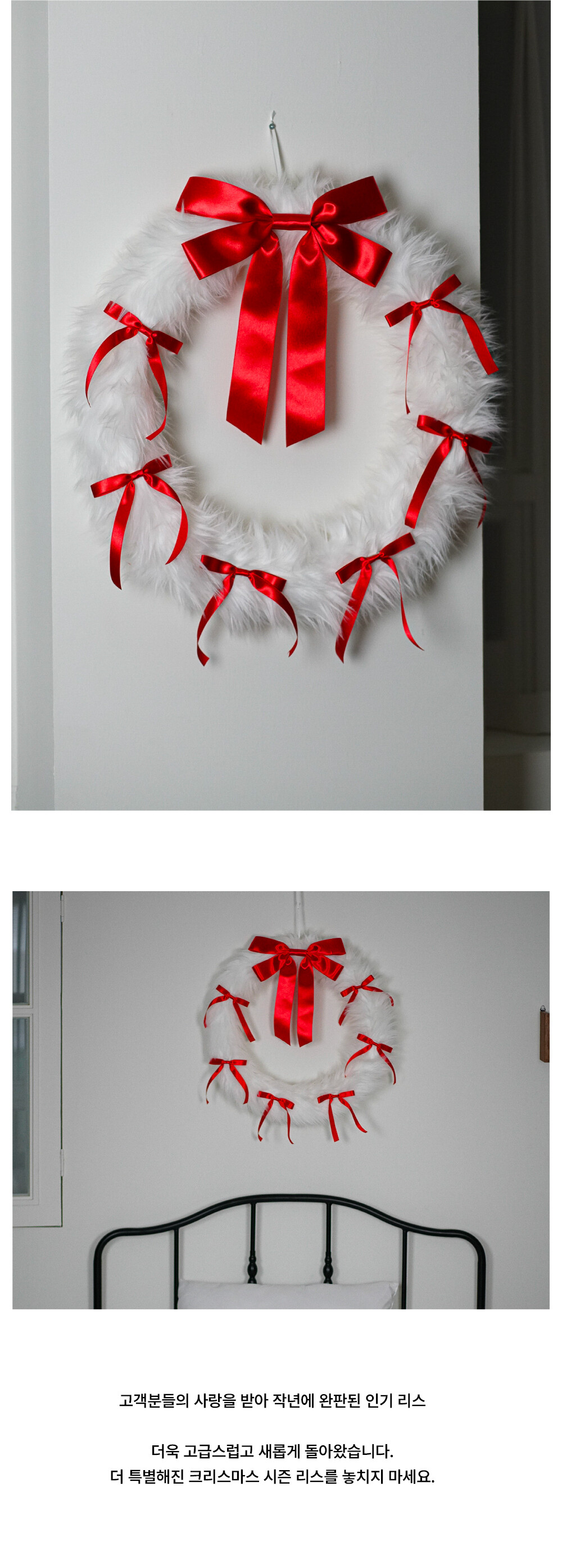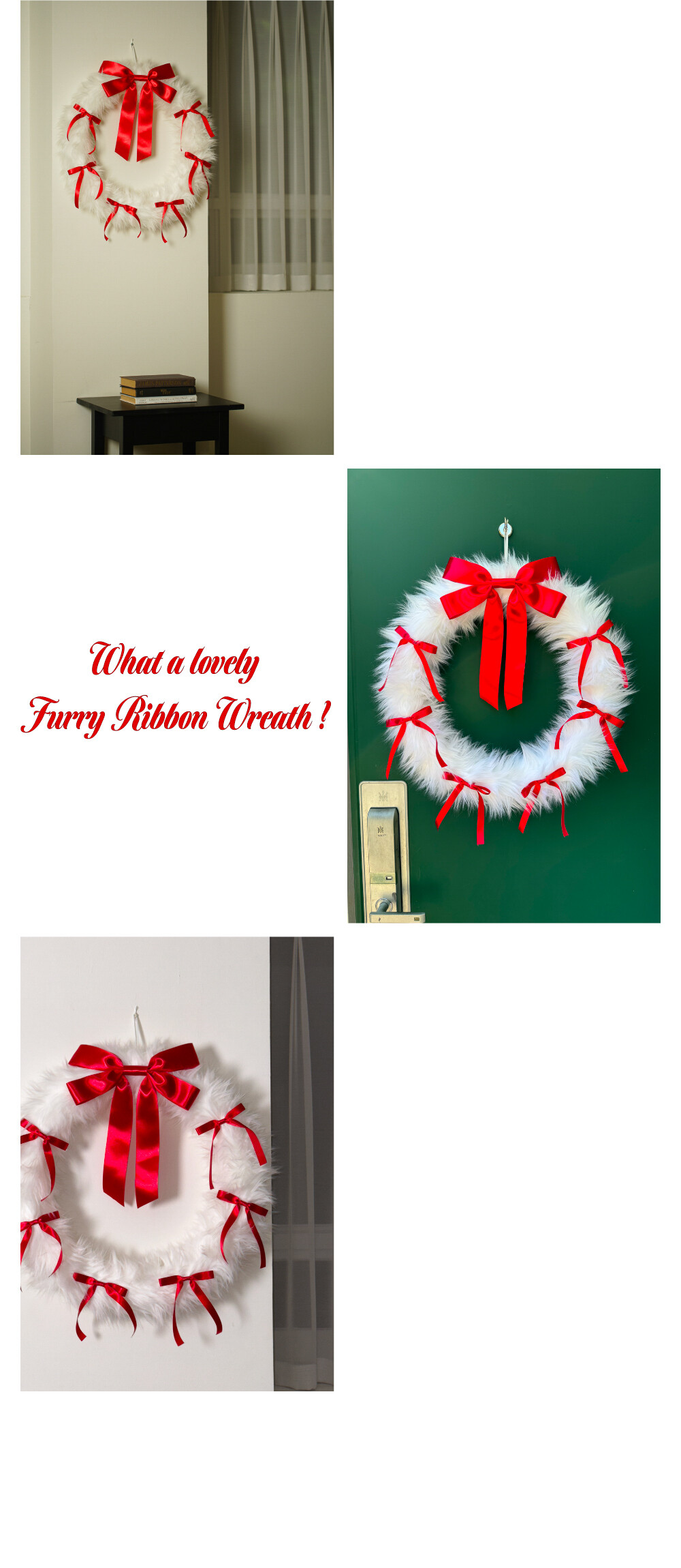 FURRY RIBBON WREATH - L (WHITE/RED)