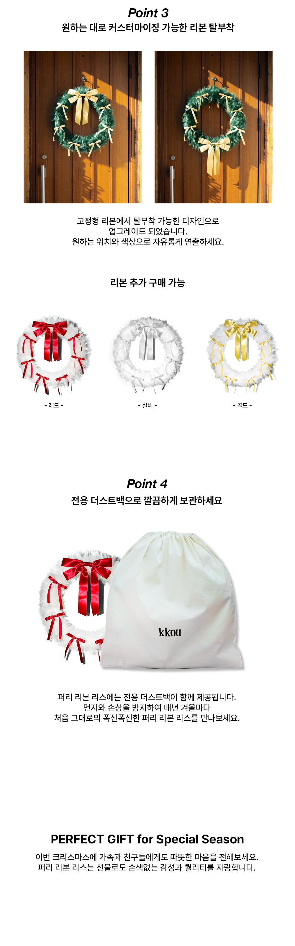 - 각 리본마다 매듭의 형태가 상이할 수 있으며 수령 후 매듭이 풀린 경우, 약한 힘으로 매만져 주시면 조정 가능합니다.