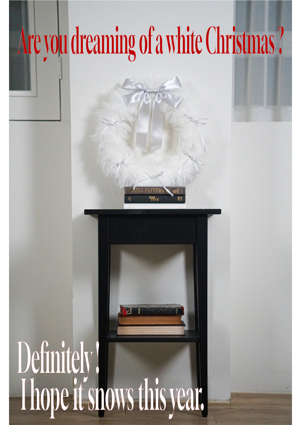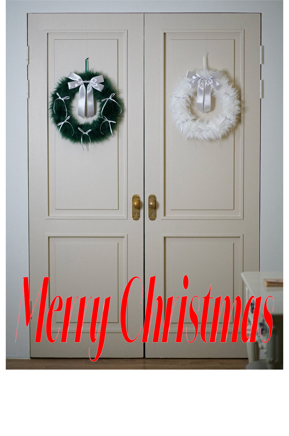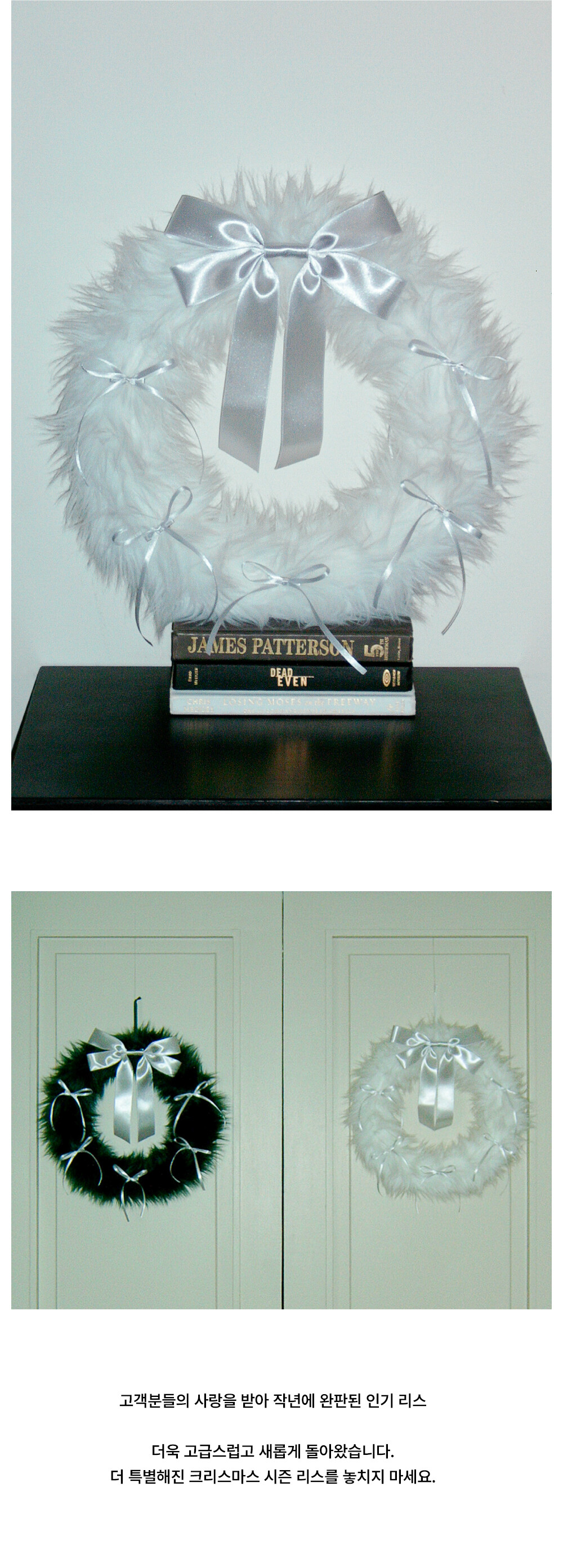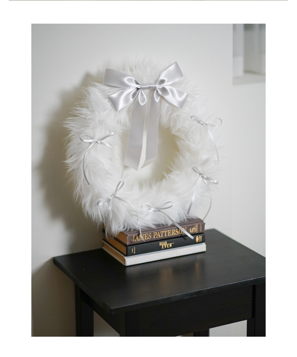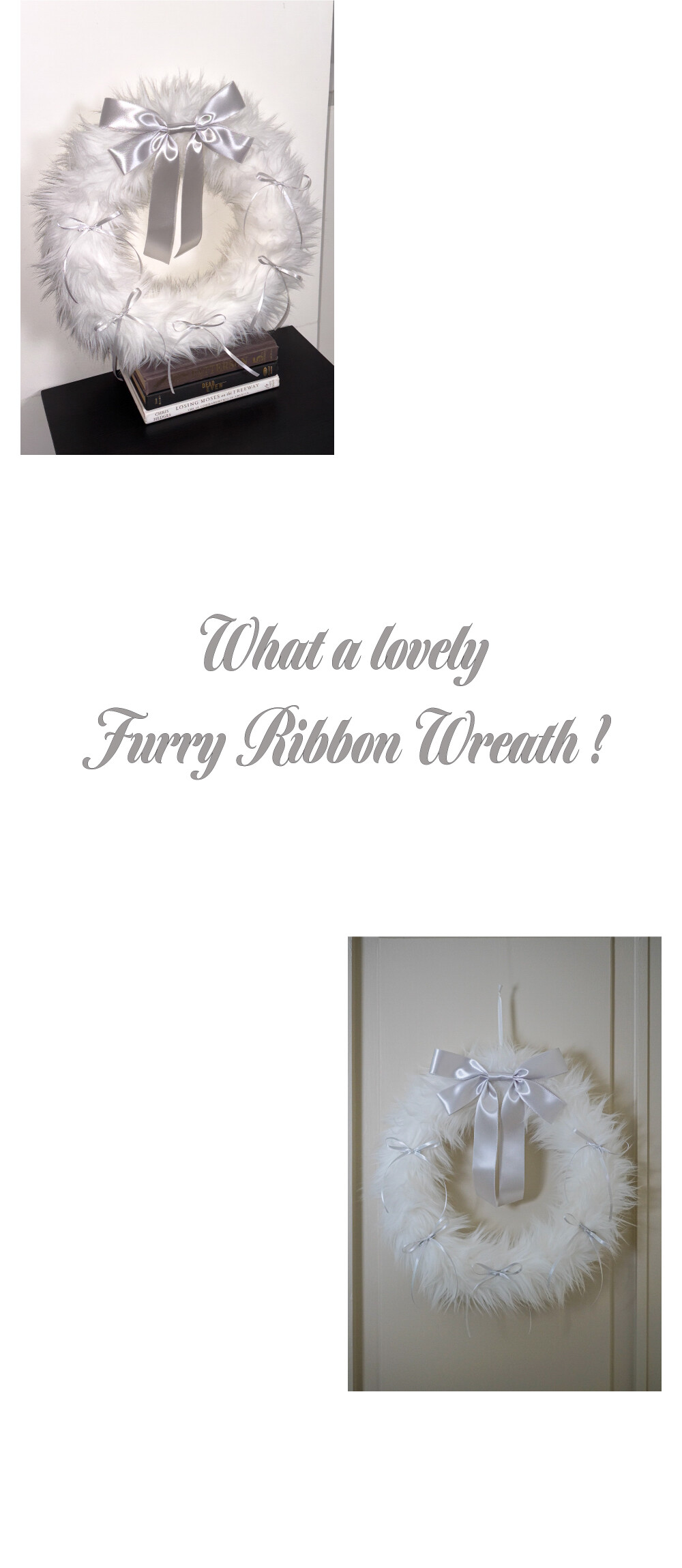 FURRY RIBBON WREATH - M (WHITE/SILVER)