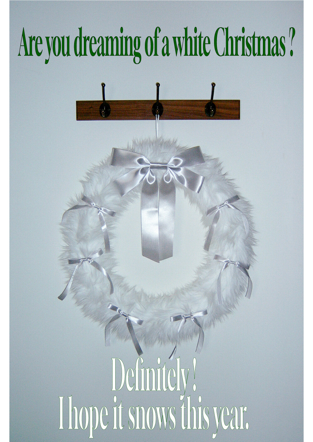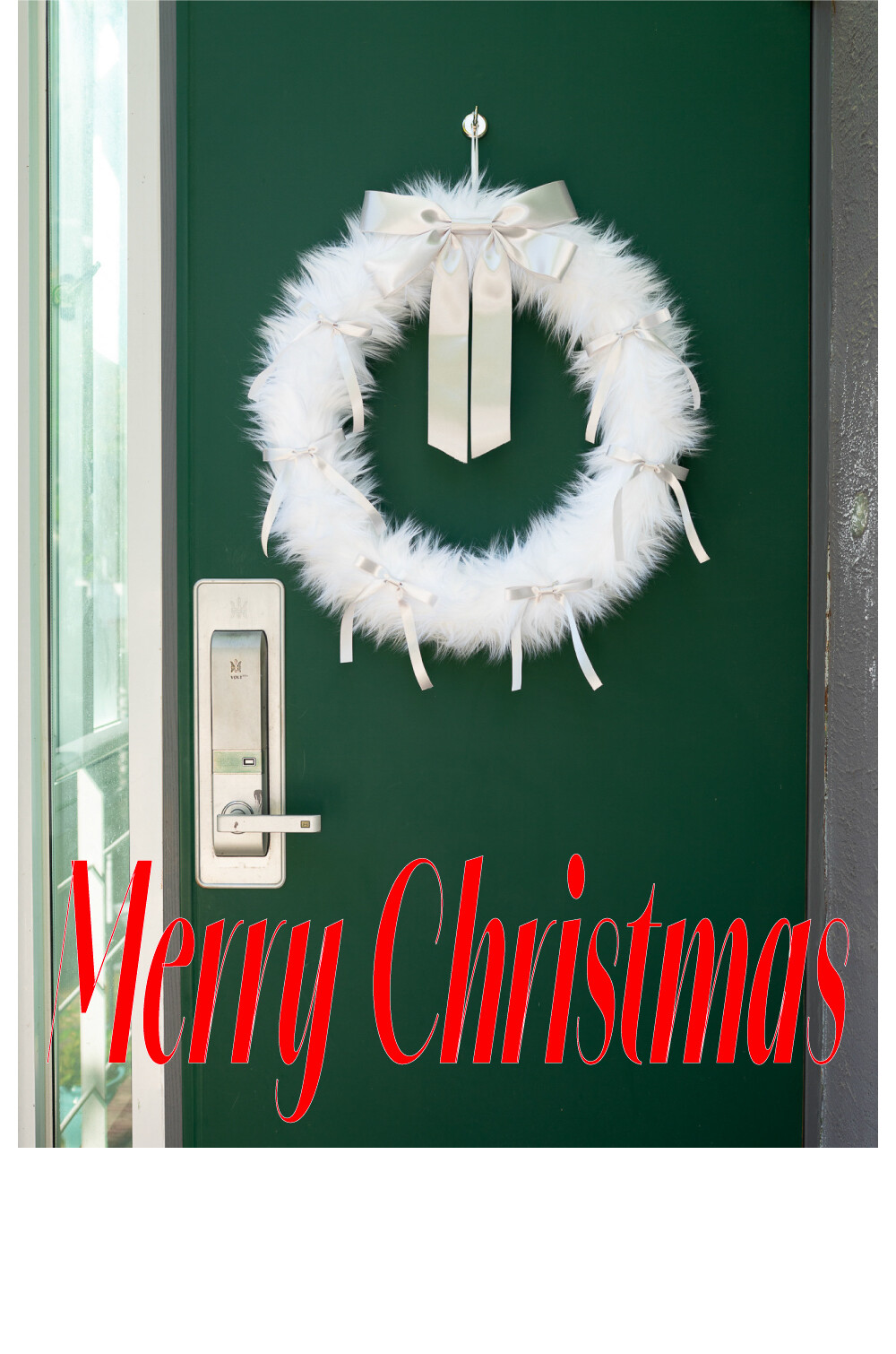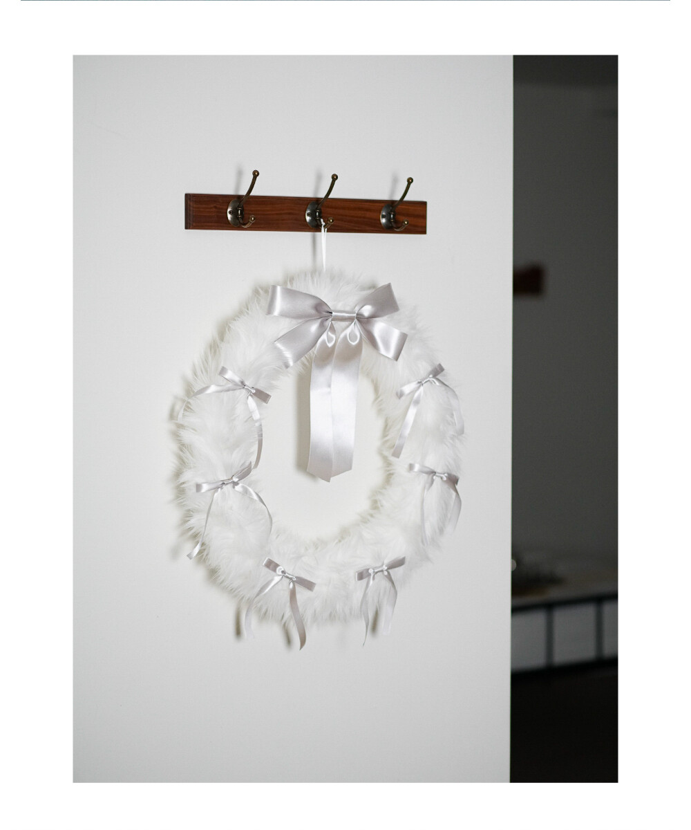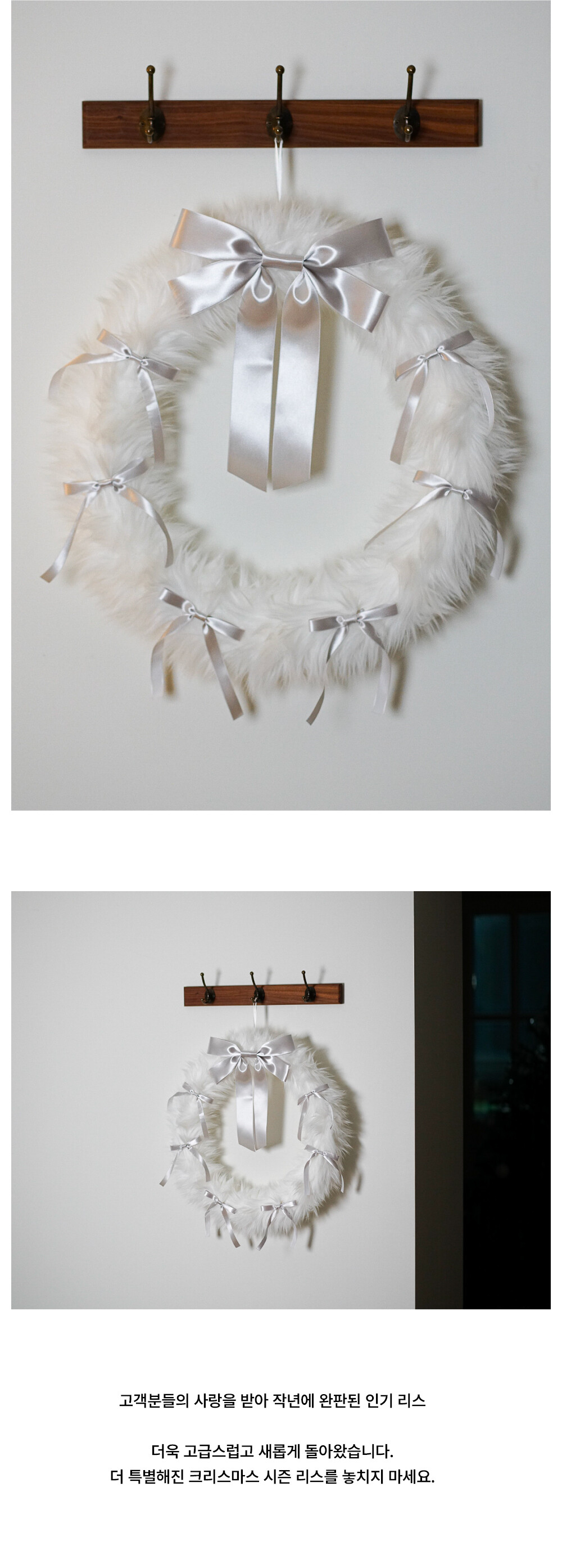 FURRY RIBBON WREATH - L (WHITE/SILVER)