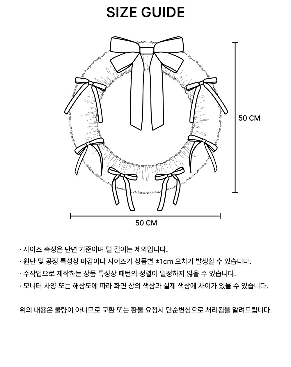 - 각 리본마다 매듭의 형태가 상이할 수 있으며 수령 후 매듭이 풀린 경우, 약한 힘으로 매만져 주시면 조정 가능합니다.