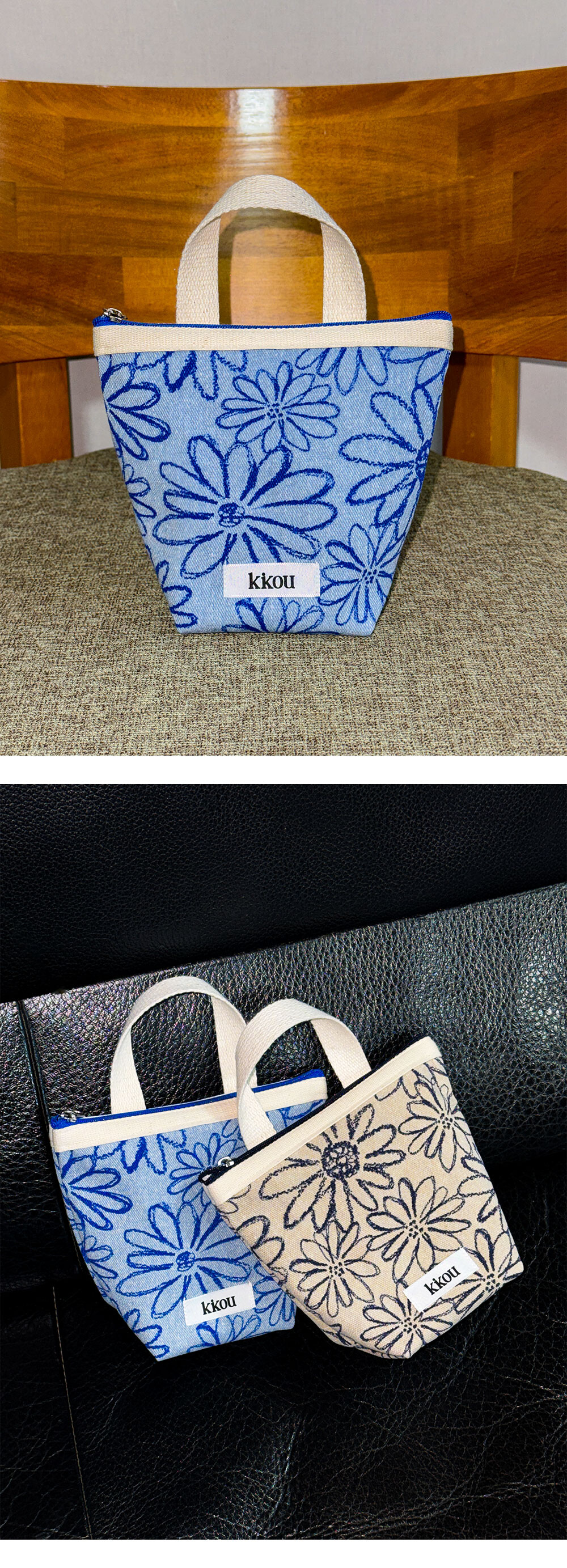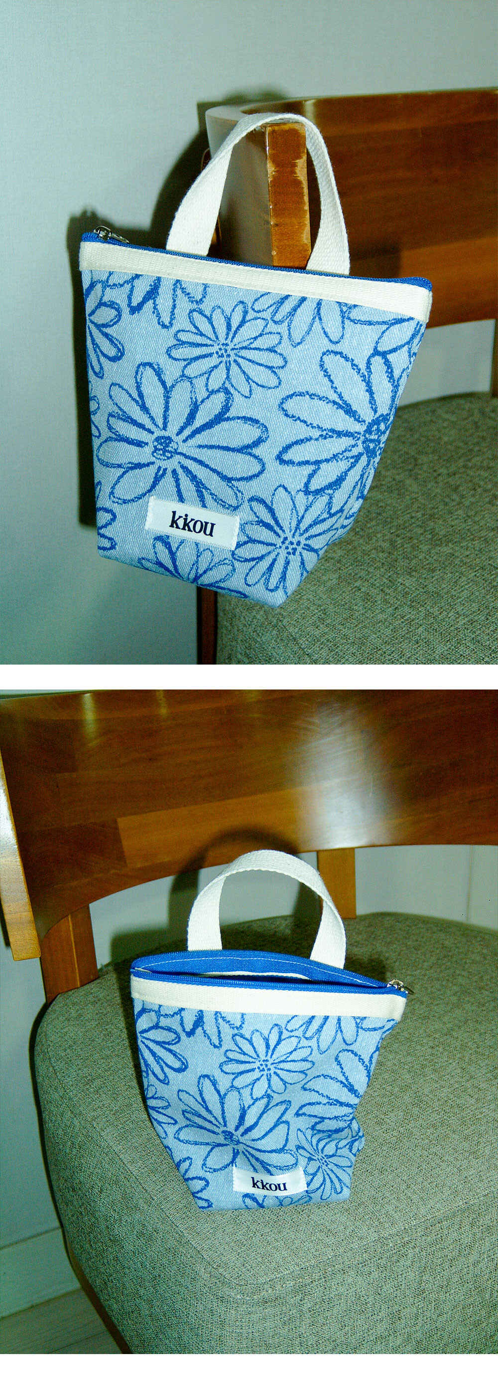 COMPACT HANDLE POUCH (FLOWER BLUE)