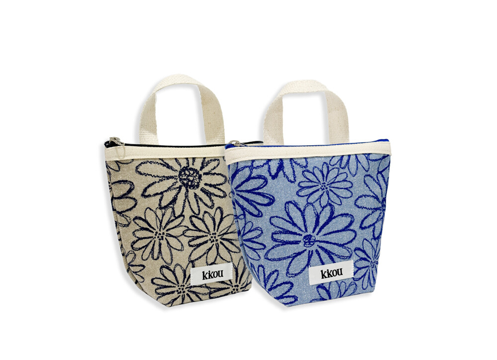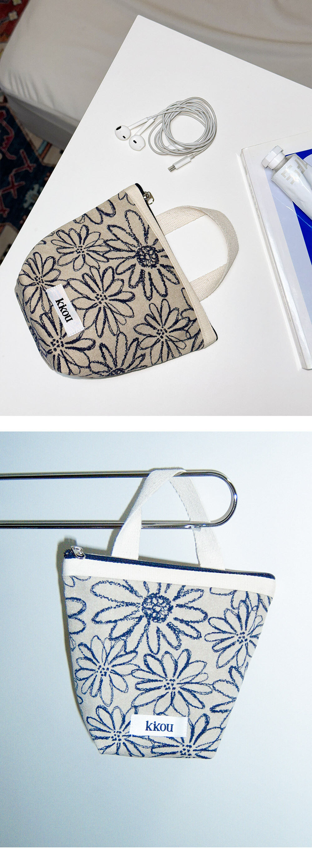COMPACT HANDLE POUCH (FLOWER NAVY)