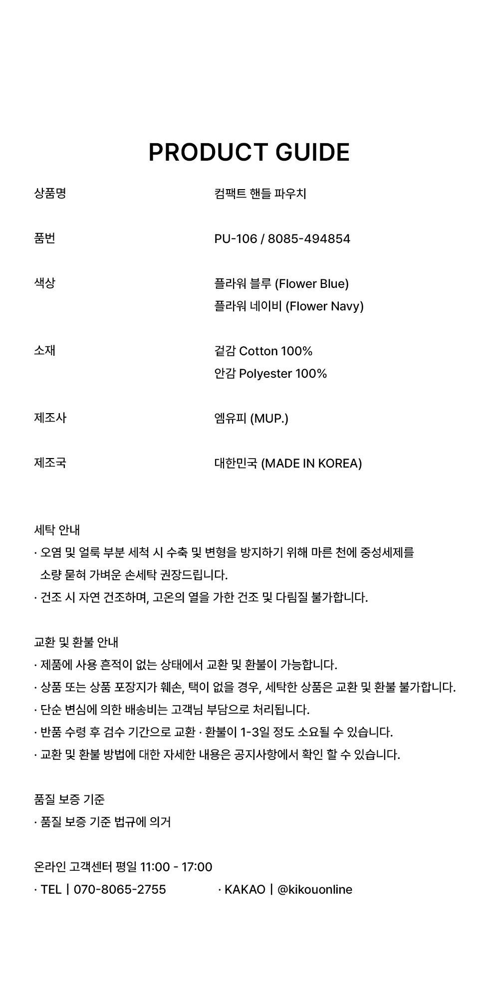 - 상품 하자, 오배송의 경우 수령일로부터 7일 이내 고객센터 접수 후 교환∙반품이 가능합니다. (교환/반품비 무료)