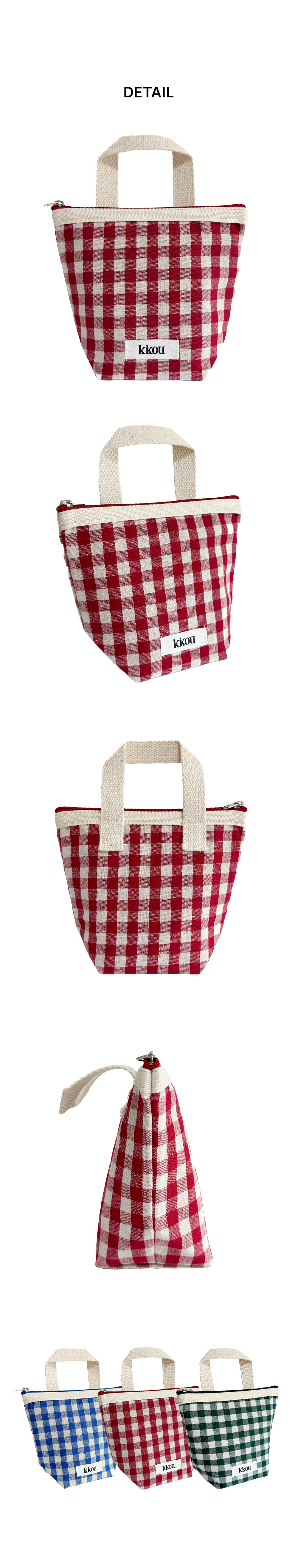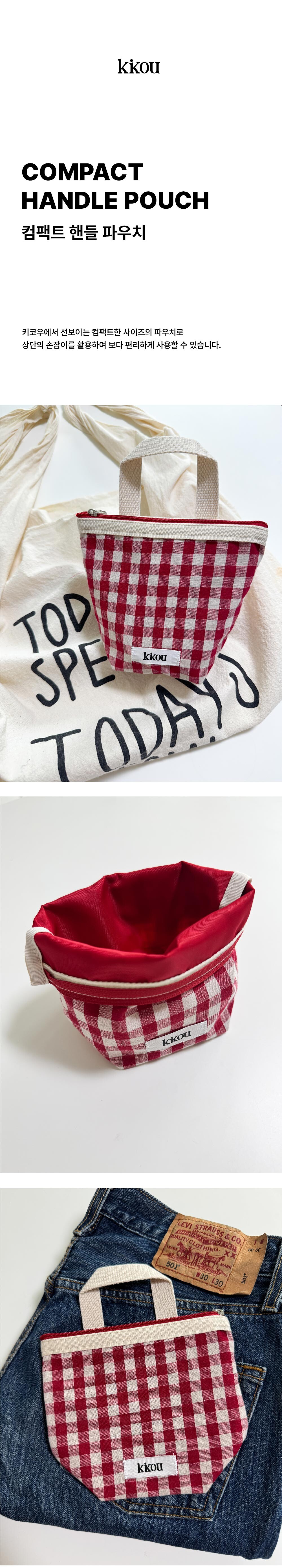 COMPACT HANDLE POUCH (CHECK RED)